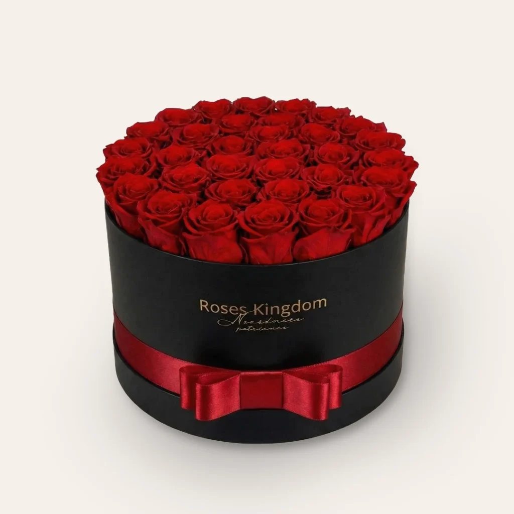 je ručne vyrobený na Slovensku. Všetko pre vás tvoríme s maximálnou starostlivosťou, aby ste v konečnom dôsledku dostali dar, ktorý pôsobí luxusne a zároveň vydrží celé roky. Do elegantného boxu s priemerom 25 cm a výškou 17 cm vkladáme len tie najkvalitnejšie ruže s priemerom hlavičky 5 – 6 cm.