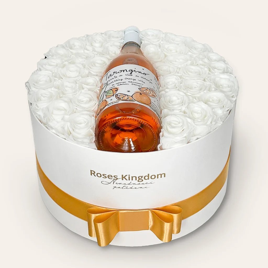 Darčekový box - limitovaná edícia s exkluzívnym pomarančovým vínom Tarongino Frizzante. Pomarančové víno Frizzante s jemnými hravými bublinkami, vhodné pre každú príležitosť, ktorého vôňa pripomína letný závan vetra. Ideálna teplota na konzumáciu pomarančového vína je 8-9 °C. Objem fľaše je 0,75l. Box, ktorý poteší a zároveň osvieži.