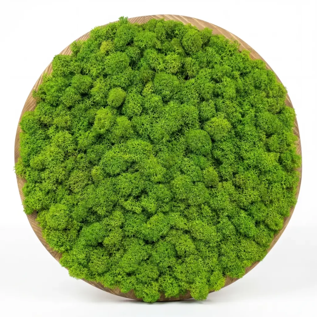 Tento kruhový machový obraz využíva špeciálne upravený stabilizovaný mach, ktorý si zachováva svoj vzhľad a mäkkosť po dlhé roky bez akejkoľvek údržby.