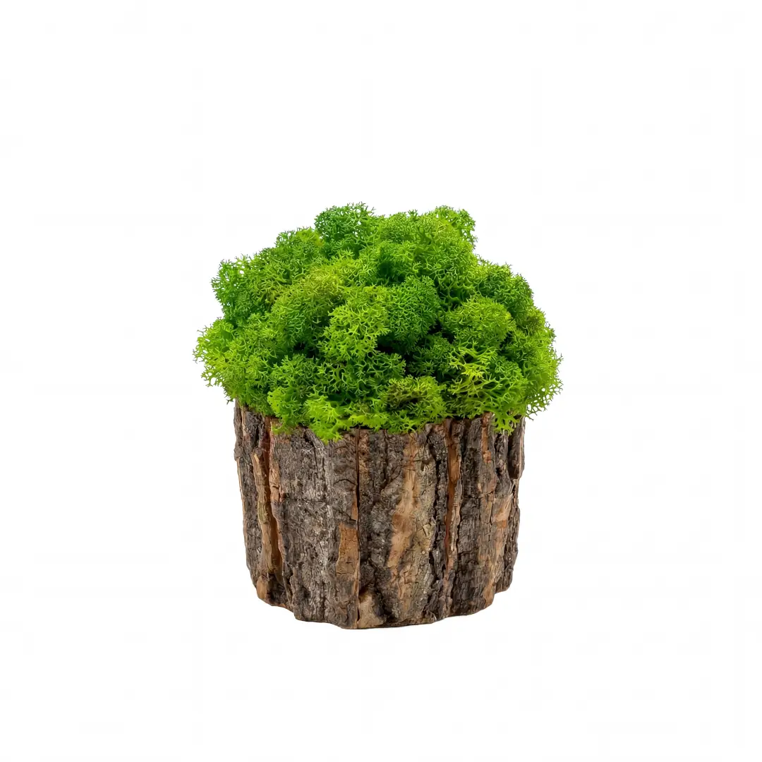 Kompaktná dekorácia na stôl, ktorá spája prirodzenú krásu dreva s jemnosťou stabilizovaného machu. Mach nepotrebuje vodu ani starostlivosť, jeho krása vydrží roky.