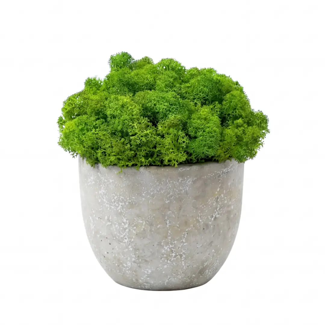Originálna dekorácia na stôl, ktorá spája surovú krásu betónu s jemnosťou stabilizovaného machu. Lišajník v odtieni light green nepotrebuje vodu ani starostlivosť - jednoducho ho umiestnite a tešte sa jeho krásou roky.