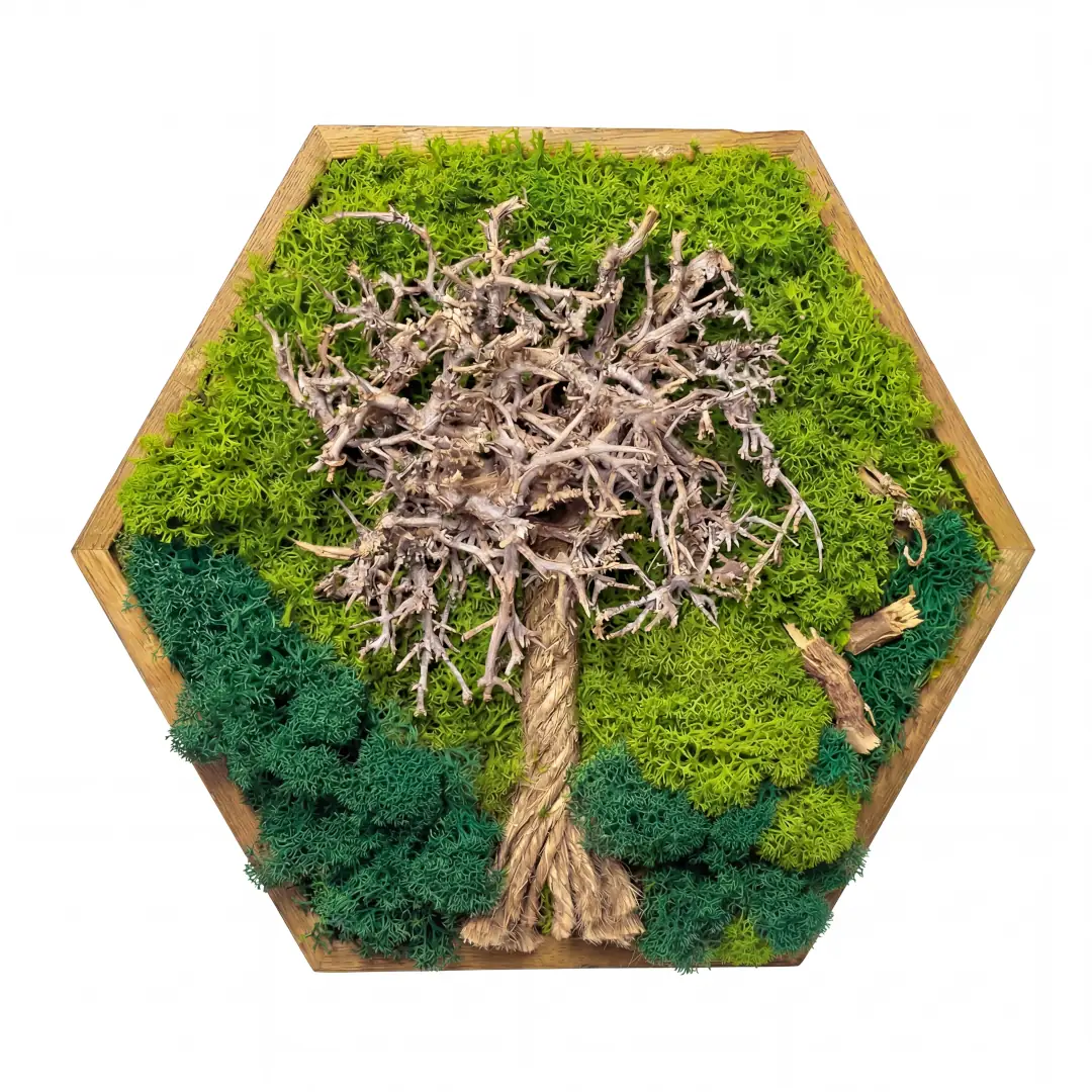 Vďaka poctivej ručnej výrobe a kvalitnému drevenému rámu získate originálnu dekoráciu do obývačky, ktorá dýcha lesom, no nevyžaduje absolútne žiadnu starostlivosť – žiadne polievanie ani špeciálne svetlo. Je to dokonalý darček s hlbokým posolstvom pre vašich blízkych alebo štýlový doplnok, ktorý prepojí váš interiér s energiou prírody.