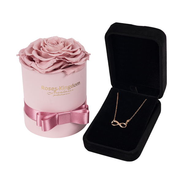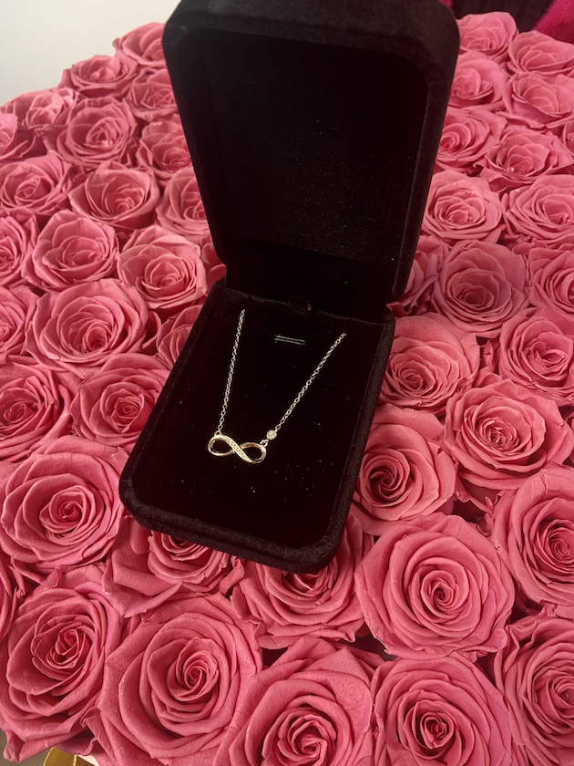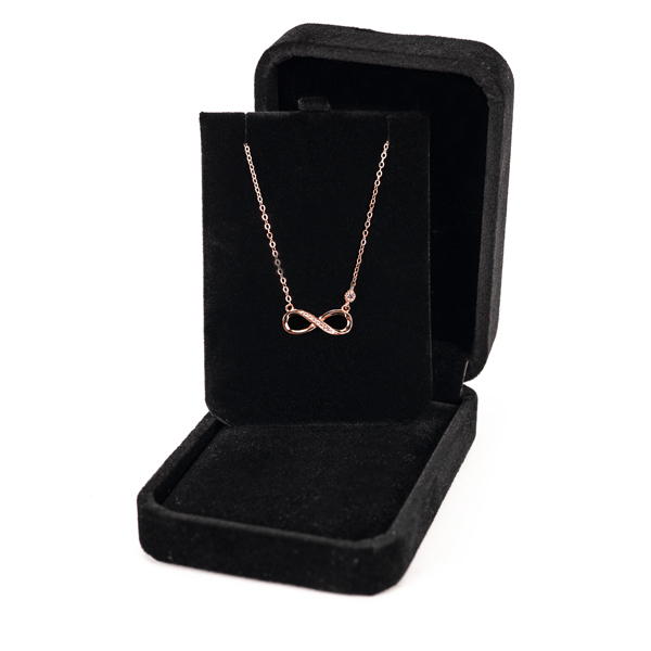 Retiazka je vyrobená z bronzu vrátane povrchovej úpravy ródiom. Ródium šperk ochráni pred sčernením, zažltnutím a poškrabaním. Na retiazke je zavesený prívesok v tvare ležatej osmičky značiaci nekonečno zdobený niekoľkými krištáľmi bielej farby. Náhrdelník neobsahuje nikel, a tak ho bez obáv môžu nosiť aj alergici.
