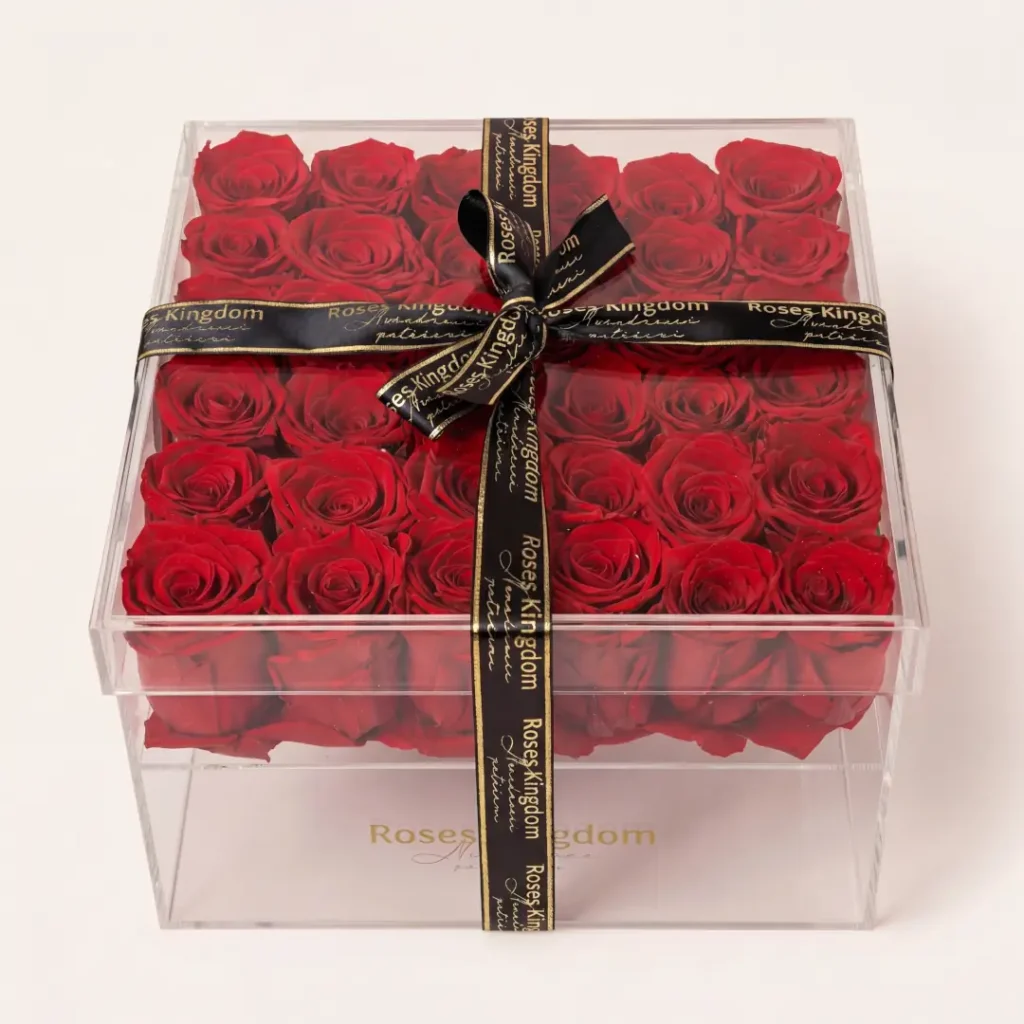 Hľadáte darček, ktorý vyrazí dych a zostane krásny roky? Royal Crystal Box predstavuje vrchol modernej floristiky a luxusného dizajnu. Tento exkluzívny box ruží v sebe ukrýva 36 sýtočervených kvetov tej najvyššej kvality. Vďaka unikátnemu procesu stabilizácie sú to trvácne ruže, ktoré si zachovávajú svoju čerstvosť, zamatovú hebkosť a žiarivú farbu bez potreby jedinej kvapky vody.
